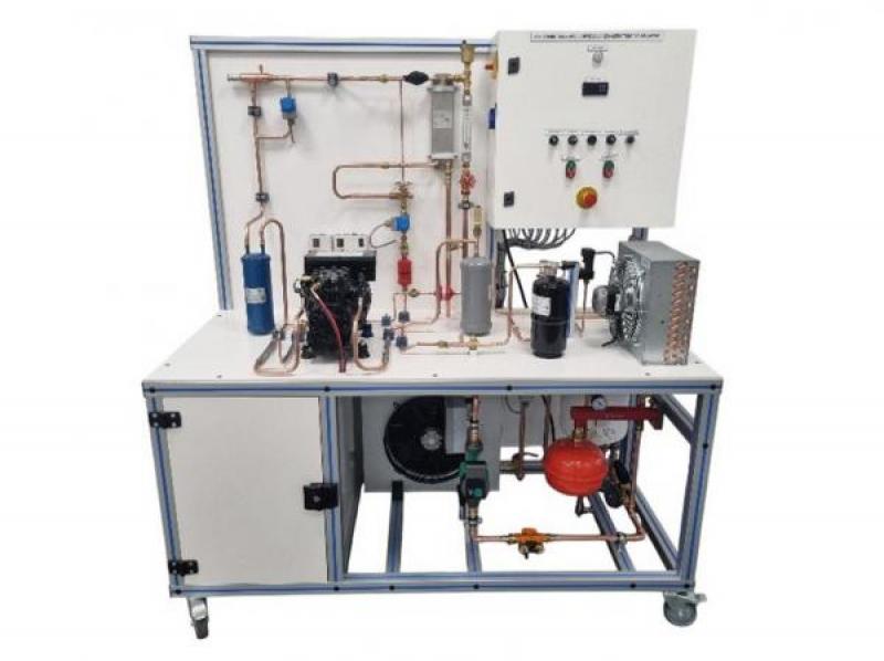 Le banc HFF400 est conçu pour former les apprenants à la manipulation des fluides frigorigènes. L’installation est basée sur un cycle frigorifique fonctionnant au R1234yf. Elle comprend les composants principaux d’une installation positive, un compresseur, un évaporateur à eau, un réservoir de liquide, un séparateur d’huile, une électrovanne de régulation, un détendeur, un condenseur à air et une bouteille anti-coup de liquide. Des vannes de service et des raccords Schrader permettent aux apprenants le raccordement d’un manifold pour les opérations de charge, de récupération et de vérification de fonctionnement.